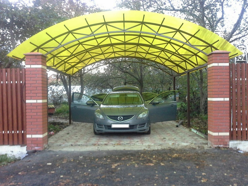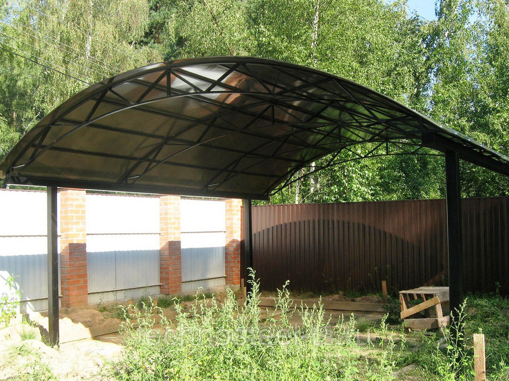 Поэтому компания "Навес Строй" настоятельно рекомендует не экономить, а усилить каркас навеса для одного автомобиля более жёсткими профилями с увеличенной толщиной металла и количеством несущих ферм.